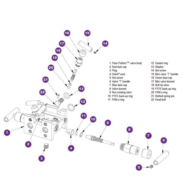 Non-rotating stem tip standard on large bore shut-off valvesAvailable in block, single flange, or double flange connection for remote or direct installation100% helium leak tested to 1 x 10-4 ml/s for guaranteed performance and reliabilitySoft seat design has 6,000 psi pressure rating at 200 ºFFeatures a replaceable Acetal seat, and straight through porting for bidirectional, high capacity flow and easy roddable cleaning on the block valvesBlow-out proof stem provides a secondary stem seal in the full open positionFKM o-ring seal and PTFE back-up ring below the stem threads to protect from corrosion and gallingAll stems are 316 Stainless SteelAll stem threads are rolled for strength and ease of operationOne-piece bonnet with a metal-to-metal seal to the valve body below the bonnet threadsSlotted spring pin to prevent accidental looseningVinyl dust caps for bonnets and stemsNon-rotating stem tip standard on isolation valves