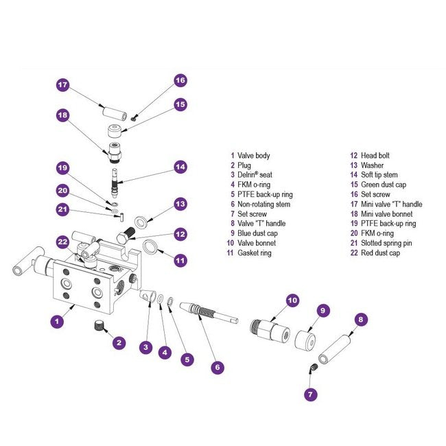 Non-rotating stem tip standard on large bore shut-off valvesAvailable in block, single flange, or double flange connection for remote or direct installation100% helium leak tested to 1 x 10-4 ml/s for guaranteed performance and reliabilitySoft seat design has 6,000 psi pressure rating at 200 ºFFeatures a replaceable Acetal seat, and straight through porting for bidirectional, high capacity flow and easy roddable cleaning on the block valvesBlow-out proof stem provides a secondary stem seal in the full open positionFKM o-ring seal and PTFE back-up ring below the stem threads to protect from corrosion and gallingAll stems are 316 Stainless SteelAll stem threads are rolled for strength and ease of operationOne-piece bonnet with a metal-to-metal seal to the valve body below the bonnet threadsSlotted spring pin to prevent accidental looseningVinyl dust caps for bonnets and stemsNon-rotating stem tip standard on isolation valves