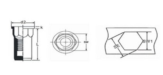 P-Series M4 Thread Flat Rivet Nut, 16.5mm