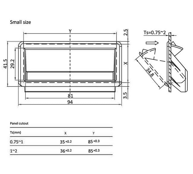 The Small Polyamide Pocket Pull Handle is a durable and versatile concealed handle designed for mounting on flaps and doors. Crafted from high-quality Polyamide (PA6GF30) material, this handle from All Electronics Hardware ensures reliable performance and longevity. Its sleek black color and compact size make it ideal for various industrial applications. With easy installation and a sturdy design, this handle offers convenience and functionality for both consumer and institutional use.