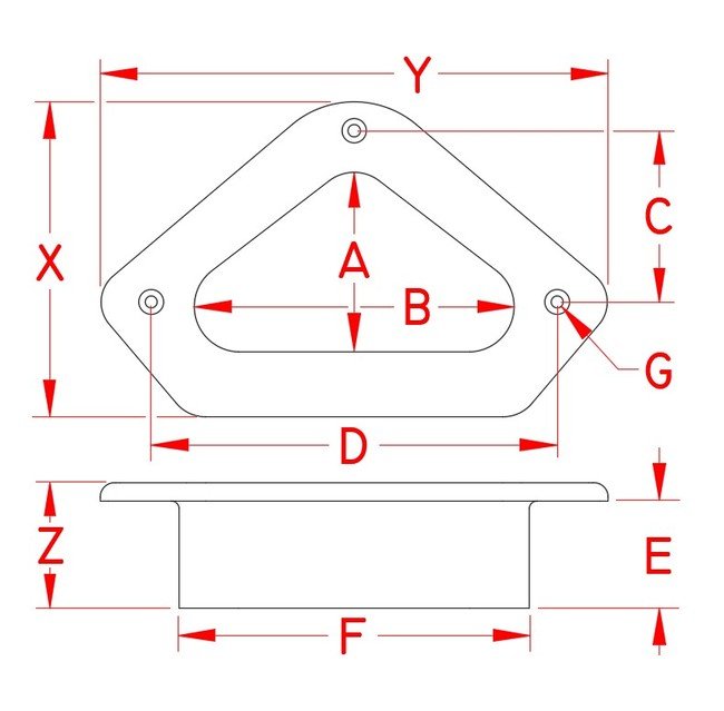 Durable Precision Cast Stainless Steel Triangular Hawse Pipes by Suncor for marine deck use. Made from grade 316 stainless steel with easy installation. Ideal for flush or recessed mounting.