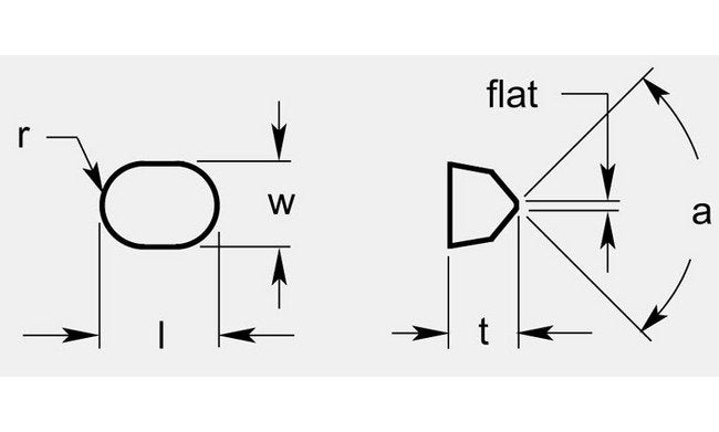 The Precision Vee Bottom Grooving Tool is a versatile solution designed with a thickness of 0.244 / 0.256 inches, suitable for various grooving applications. Featuring a precise radius of 3/16 inches, an angle of 90 degrees, and a width of 0.362 / 0.368 inches, this tool ensures consistent and accurate grooving results. With additional specifications including 'l' measurements of 0.494 / 0.506 inches and a flat surface of 0.060 / 0.070 inches, this tool offers exceptional performance and durability. Grade availability can be tailored to specific requirements.