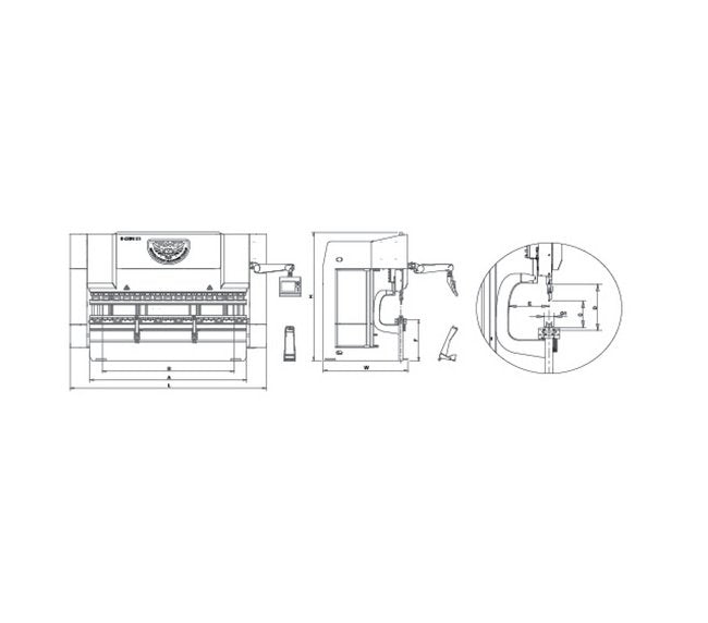 7-Axis CNC:Y1, Y2 precision ram positioningX, R precision servo-driven back gaugeZ1, Z2 AxesCNC motorized wave crowningLarge trio of value:Large open heightLarge strokeLarge throat depthSafety laser with manual F. AKAS II M -FPSC-B-C + safety covers with switchDELEM DA-66T touch screen CNC control unit with 3D graphical visualizationClamping:American/European section-style box punch clamps(standard on 420 Ton and lower)American-only style punch clamp available at no charge on 420 Ton and lowerStandard X-Axis travel is 32.3" with third gauge step capable of gauging parts up to 41.7" with standard back gauge (most machines)Stable and fast AC servo motor-driven precision back gauge with linear guide and ball bearing system (X - R)Quick-set sliding front sheet support arms with full-length linear guide, tilting stop and T-slot (front gauge squaring, etc.)Protection covers (side and rear safety doors)Rear work lightWorld-class hydraulic and electronic components that are easily replaceable (parts stocked by us or available off-the-shelf from your local supplier):Hydraulic blocks and valves (Hoerbiger)Electronics system (Siemens, Schneider, Mitsubishi)Adjustable height suspension control unit armHigh-yield plate constructionAbility to accurately fade ramStage bendingAutomatic bend sequence determinationAutomatic stretch length calculator for blank size determinationHydraulic Oil (up to 250 Ton machines)