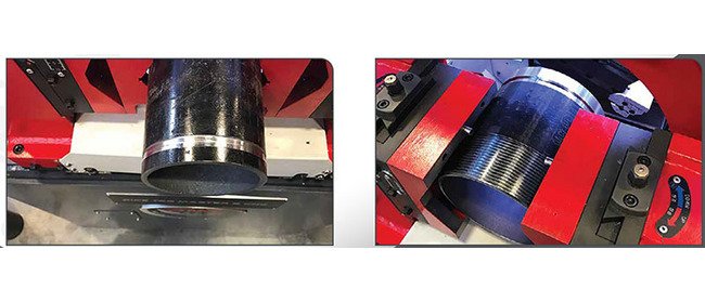 Working area lightsAdjustable + Replaceable cutting tools and insertsReplaceable clamp holders for various sizes, elbows, flange'sAuto cantering clampsTrue pipe canteringSealed clamping guidesStress relieved welded robust frameHeavy duty facing head drive systemStandard: CNC Control Unit - Easily Programming Interface with Simple Programming Menu-Facing, Single Bevel, Double Bevel, Single V, Double V, Single J, Double J, Single-U, Double U, Compound, J Prep, J-prep with Back Bevel, Compound J-prep with Back BevelOptional: CNC (Fanuc) for added threading functions (if required)True pipe canteringClamp adjustmentClamping control buttonsSmall footprint