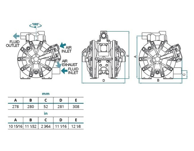 The SAMOA Metal Air Operated Double Diaphragm Pump DP200-A is a high-performance solution for dosing, spraying, and transferring various fluids. With a robust metal construction and ATEX certification, it ensures safe operation in potentially explosive atmospheres. Featuring a maximum flow rate of 53 gpm and a pressure range of 22 to 115 psi, this pump is designed for durability and efficiency, making it ideal for tough applications in industrial settings.