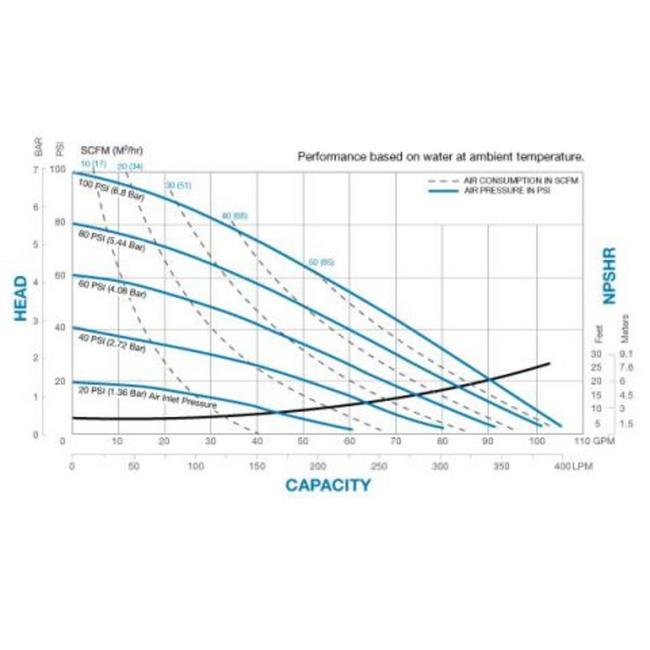 The Sandpiper S15 Metallic Top Discharge Standard Duty Pump is designed for intermittent/portable use with moderately abrasive fluids and solids. Constructed with Stainless Steel wetted parts, UHMW check valve seat, and Aluminum non-wetted material for durability. This pump offers a displacement per stroke of 0.41 gal, 0.25in solids handling, and a max flow rate of 0.41 gpm. Recommended for water and wastewater applications.