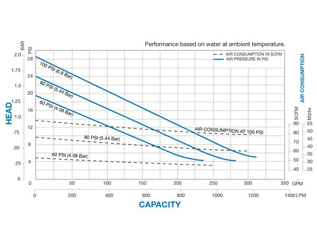 The Sandpiper SMA3-A SludgeMaster™ 356-T6 Aluminum with Ductile Iron Impeller is a high-capacity submersible pump suitable for handling mud, leaves, twigs, sand, sludge, and soft solids up to 1.5 inches. With a maximum flow rate of 300 gpm, this portable pump operates on compressed air, making it ideal for areas without electric power. Constructed with sturdy aluminum, it is highly durable and resistant to rough handling, featuring a fully submersible design, self-priming capability, and the ability to handle solids up to 1.5 inches. Perfect for various applications in construction, mining, steel mills, barge cleaning, wastewater management, and more.