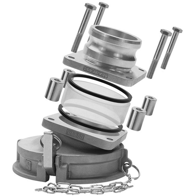 Upgrade your fluid transfer operations with the Seal Fast 4-Inch Aluminum Two-Piece Gravity Drop Female Coupler. Featuring a self-locking handle mechanism for secure connections, this coupling enhances efficiency and safety. Crafted from durable aluminum, it ensures long-lasting performance. Compliant with Federal/DoD procurement standards, GSA requirements, and industry certifications, this coupling is ideal for API/Fuel Tanker applications. Trusted Seal Fast brand ensures reliability and quality.