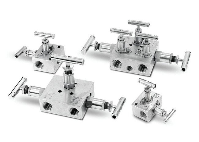 2-,3-,and 5-valves Instrument manifolds valves.All 316 stainless steel construction with PTFE packingEach valve of every manifold is factory tested with nitrogen gas to a maximum allowable leak rate of 0.1scc/min.