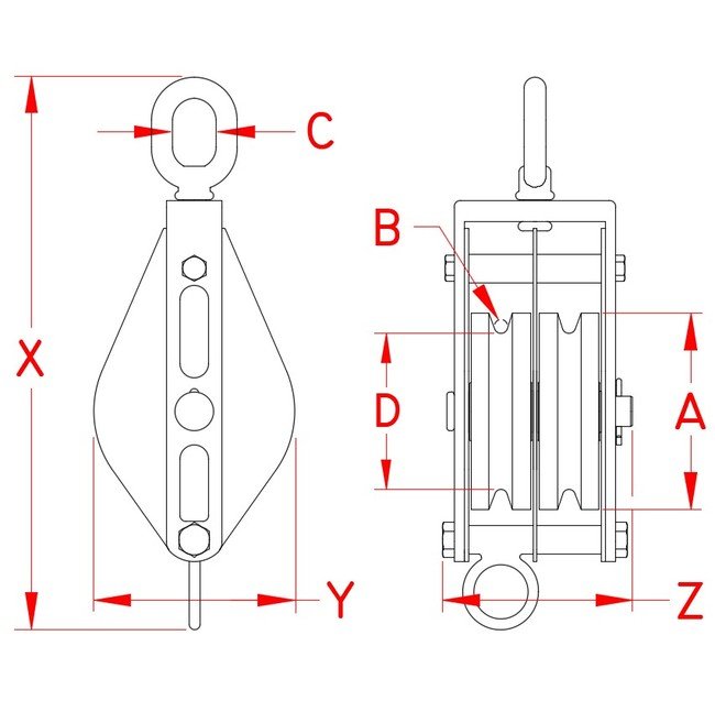Versatile and durable Stainless Steel Wire Twin Swivel Eye Block for rigging applications. Supports wire rope sizes 3/16" to 5/16".