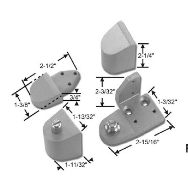 3/4" offset pivots for aluminum doors and framesWeather resistantFull race ball bearing and design, provides smooth operation on bottom pivot door portionNo sag, entire weight of doors rests on floor mounted pivot portionCompletely tamper proof, yet easily removable, replaceable in unlocked position