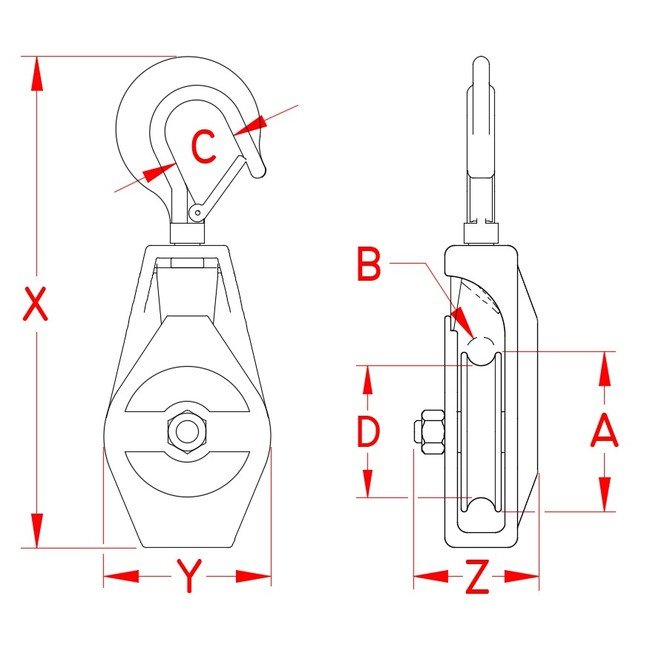 Suncor R Series Stainless Steel Rope Seine Block with Hook