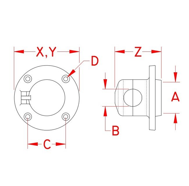 Upgrade your marine deck with the precision-cast Suncor Stainless Steel Rope Deck Pipe. This deck pipe, crafted from chrome plated brass, ensures durability and corrosion resistance. Its hinged design allows for convenient access, and installation is effortless with included #10 screws. Measuring 1.50" (A) x 0.78" (B) x 1.72" (C), this deck pipe is ideal for marine settings, meeting stringent quality standards for reliability and performance.