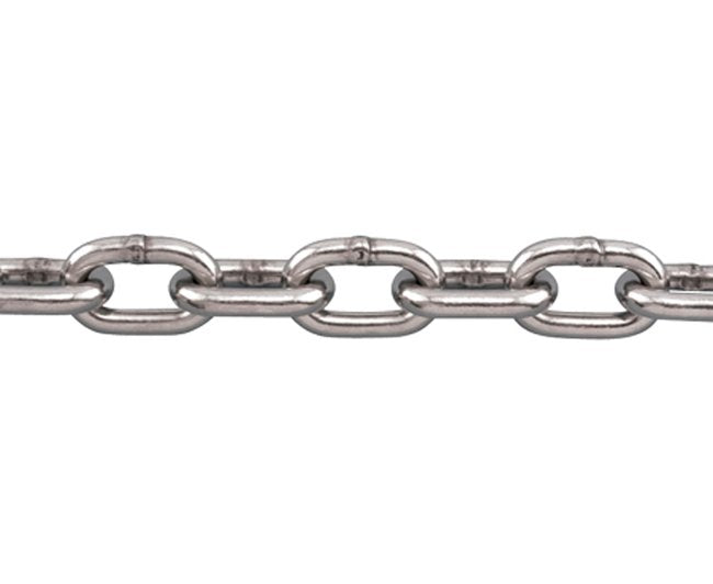 Most commonly used chain for marine applications. this chain complies fully with all requirements of the U.S. national association of Chain manufacturersâ specs.All dimensions are nominal (± 3%) and are subject to change without notice.