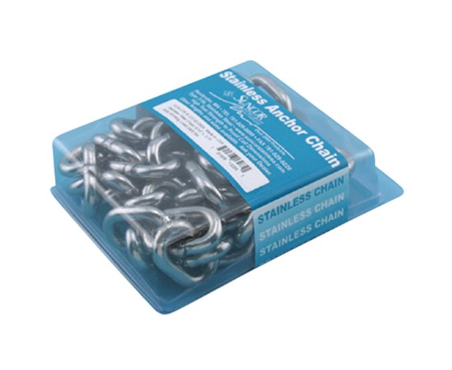 Pre-cut chain in bar coded packaging. commonly used as lead chain for pleasure marine anchors (ground tackle).All dimensions are nominal (± 3%) and are subject to change without notice.