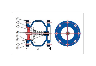 It is recommended that valves be installed 7 to 10 pipe lengths away from the turbulence.Consult factory for optional construction materials and installation instructions. Optional resilient seating of Buna-N or Fluorocarbon (FKM) available for 6" size and larger.Manufacturer reserves the right to modify dimensions, materials, or design.