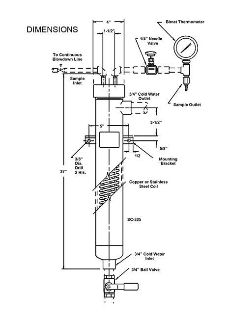 Boiler Water Cooling Under Pressure for Safe Accurate SamplesWhen boiler water samples are taken without being cooled under pressure as much as 20% of the sample can flash to steam leaving a greater concentration of solids in the boiler water and inaccurate readings when making your analysis. The purpose of the SC325 sample cooler is to cool samples under pressure so accurate sampling can be made.