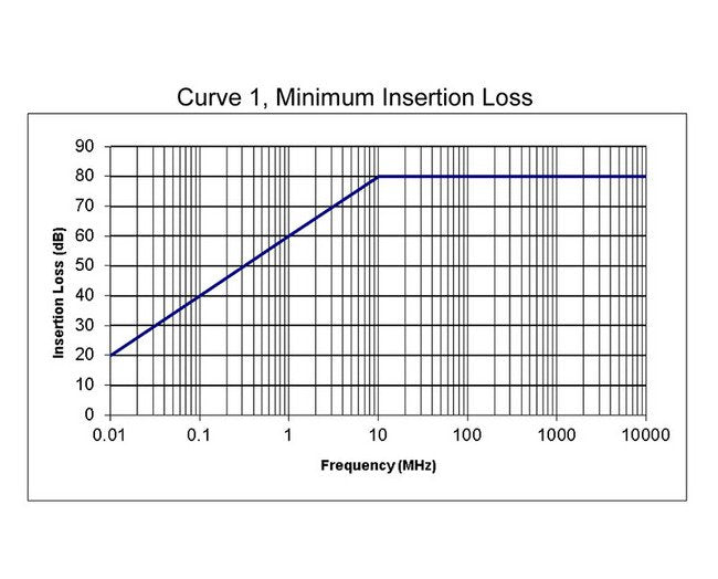 Per MIL-STD-220, 20 dB @ 10 kHz, 80 dB @ 10 MHz to 10 GHz