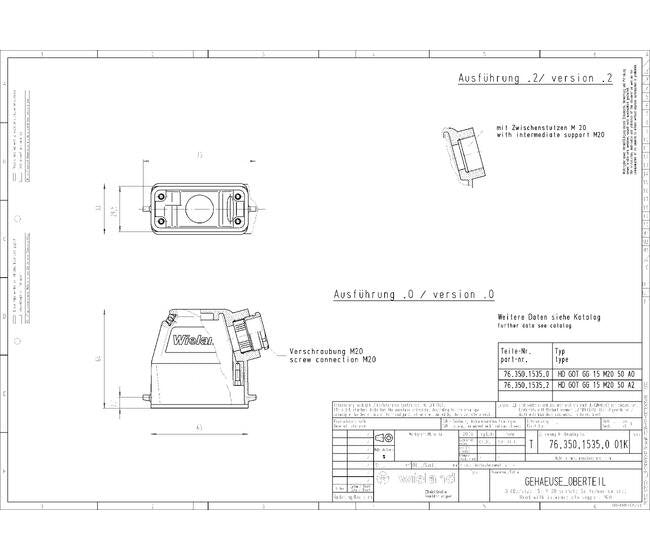 The Wieland HOOD HD GOT GG 15 M20 50 A0 Multi-Pole Heavy-Duty Industrial Connector Housing is a robust solution designed for industrial applications. Constructed from durable aluminum with a gray powder coating, this 15-pole connector housing features a single locking lever and a cable gland M20 on the right side, ensuring IP54 protection. With a temperature range from -40°C to 120°C, UV resistance, and compliance with RoHS regulations, this housing meets stringent industry standards for quality and safety.