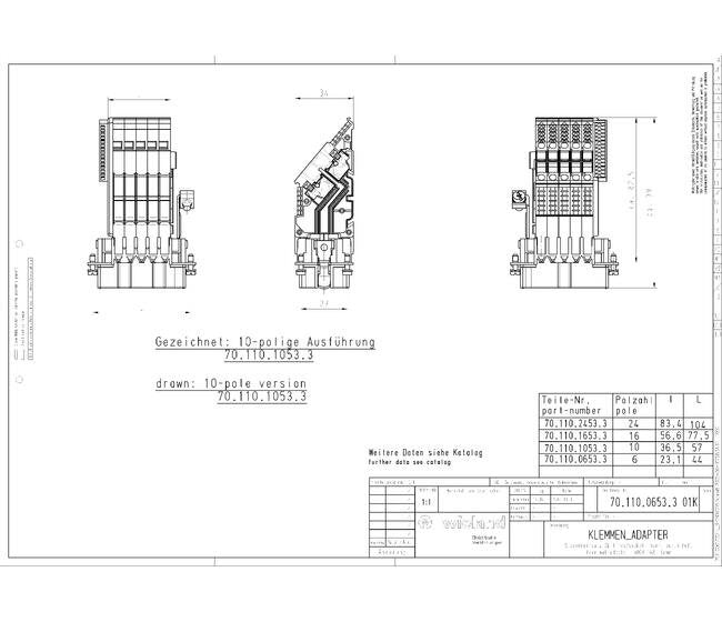 Enhance industrial connectivity with Wieland BAS SAS LL 24 4.0 Adapter, featuring 24 poles, UL94 V2 insulation, and robust screw connections.