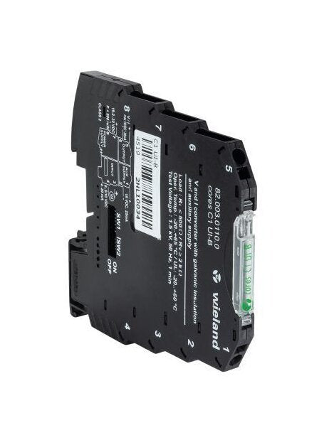 Enhance your electrical systems with the Wieland C1 UI-B Analog Isolation Amplifier Core. This 3-way galvanic isolation amplifier offers adjustable input and output ranges, ensuring precise signal conversion with < 0.1% accuracy. With a compact design and compliance with RoHS, REACH-SVHC, and UL certifications, this amplifier core is ideal for industrial applications requiring high-quality electrical isolation.