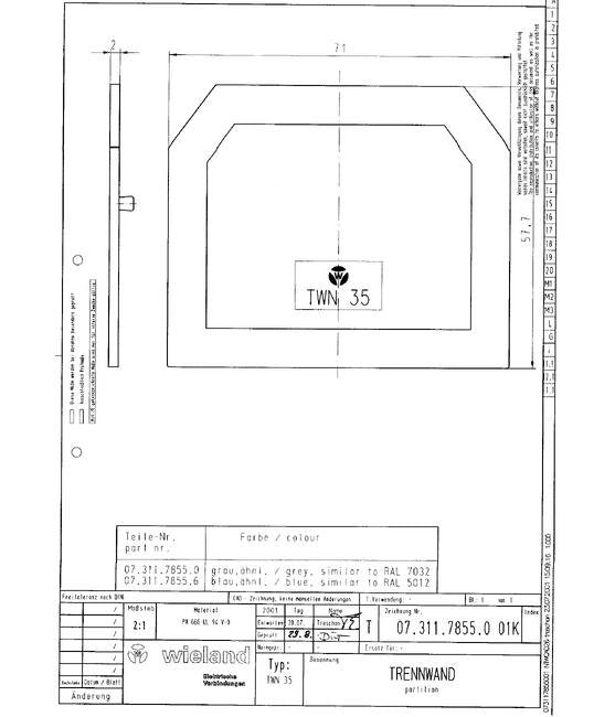 High-quality Wieland TWN 35/V0 Gray Partition End Plate for DIN Rail Terminal Blocks - 2mm thickness, V0 inflammability class, RoHS & REACH-SVHC compliant