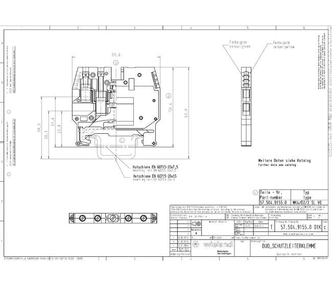 Wieland WK 4/D2/2SLU /V0 Earth Terminal Block for DIN Rail