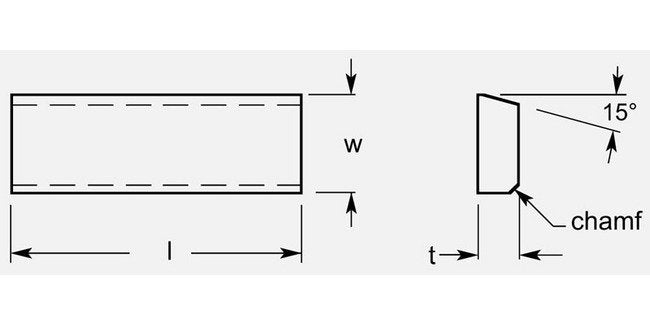 Precision Woodworking Anvil with 0.495/0.505 in width, 15° angle, and 0.1825/0.1925 in thickness. Custom grade options available.